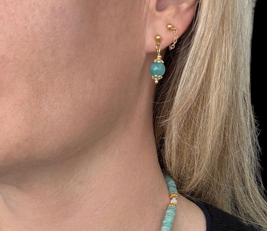 Boucles d'oreilles Diana créoles en Amazonite 2
