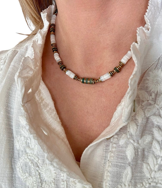 Collier Hossegor en Émeraude et Nacre blanche