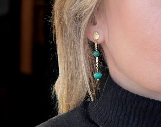 Boucles d'oreilles Athena en Malachite
