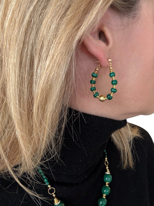 Boucles d'oreilles Diana créoles en Malachite
