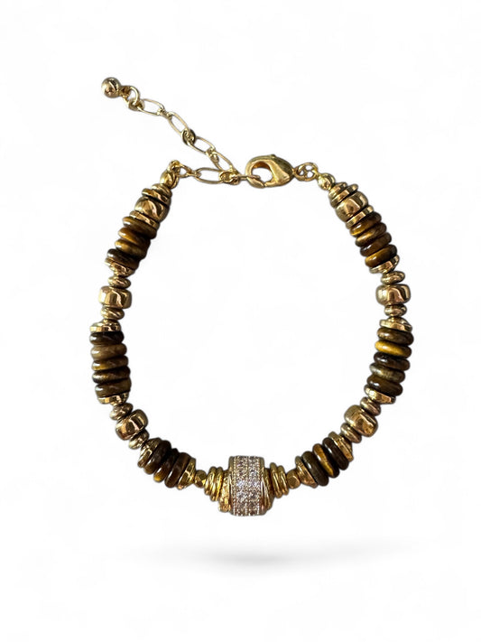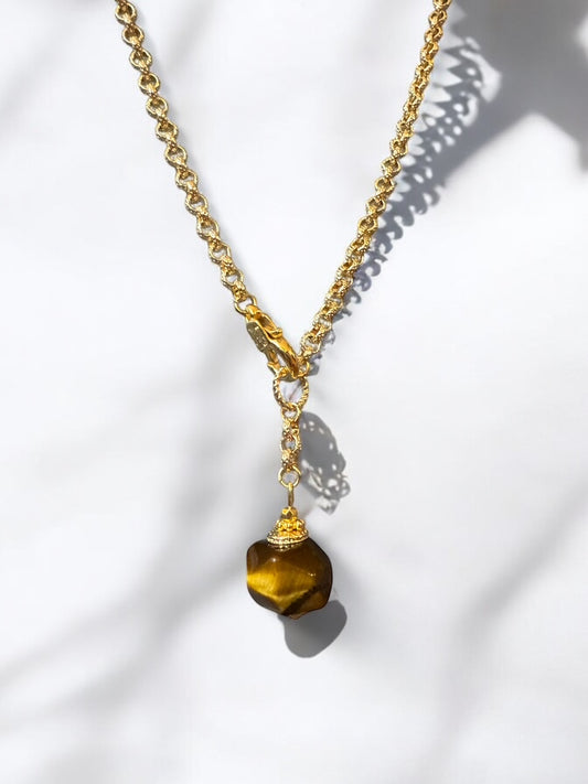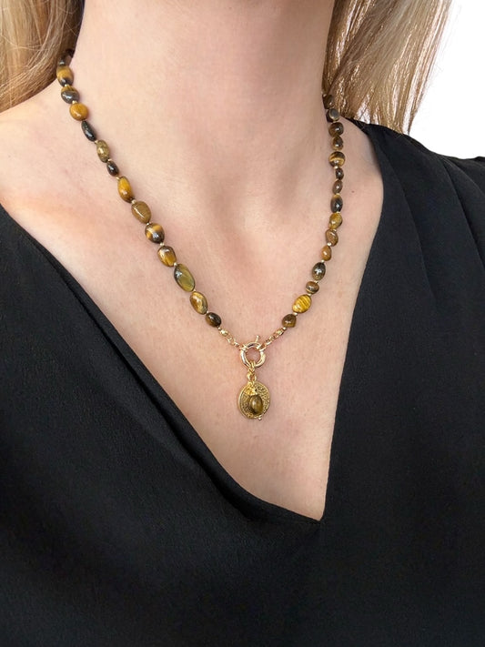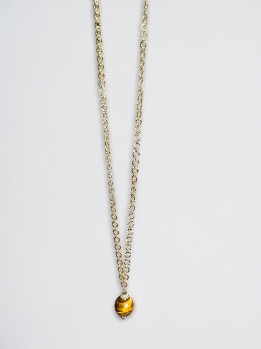 Sautoir Philippine en oeil de tigre et Pierre de soleil