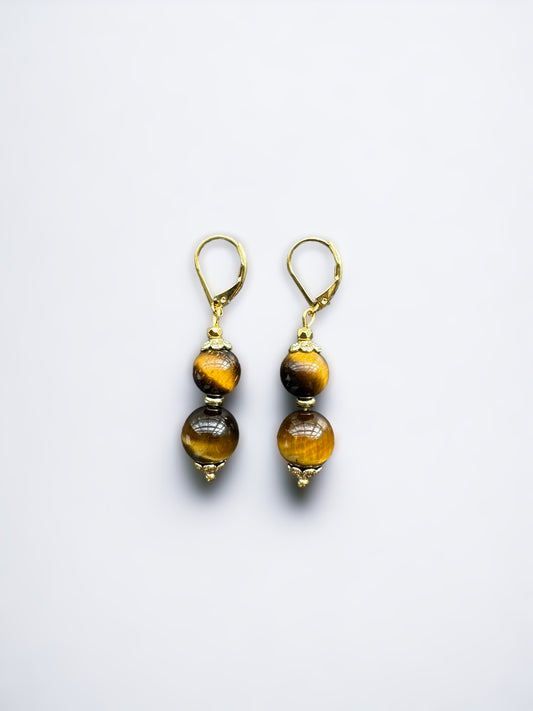 Boucles d'oreilles Luna longues en Oeil de tigre