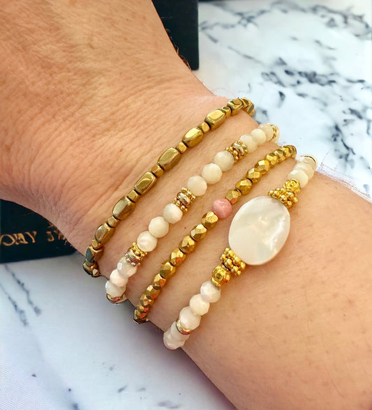 Bracelet Orphée facettes dorées et Rhodocrosite