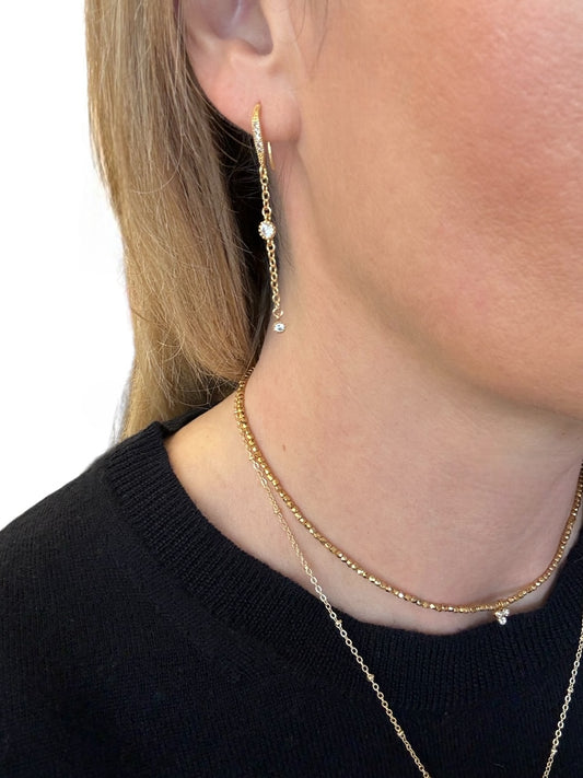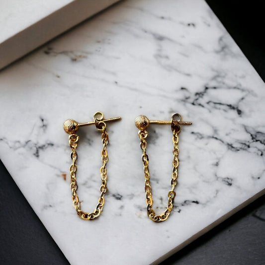 Boucles d'oreilles Orphée chaine fine courte clou zirconium