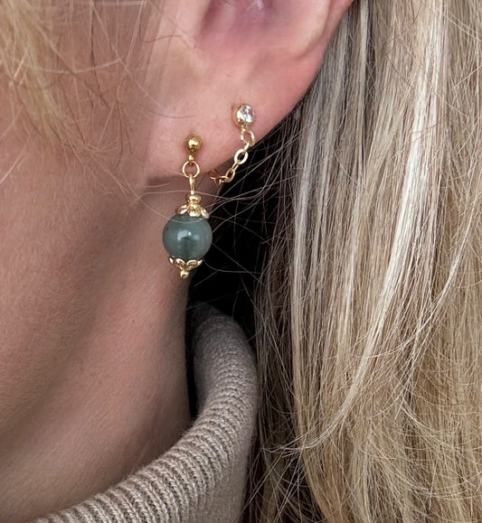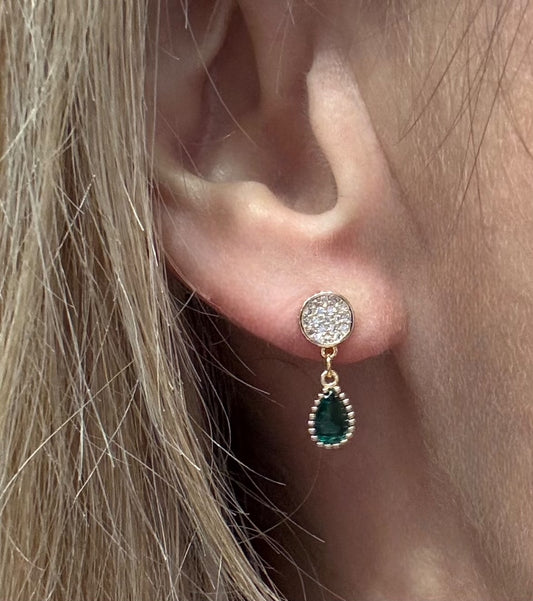 Boucles d'oreilles Orphée avec gouttes en zirconium vert " emeraude"