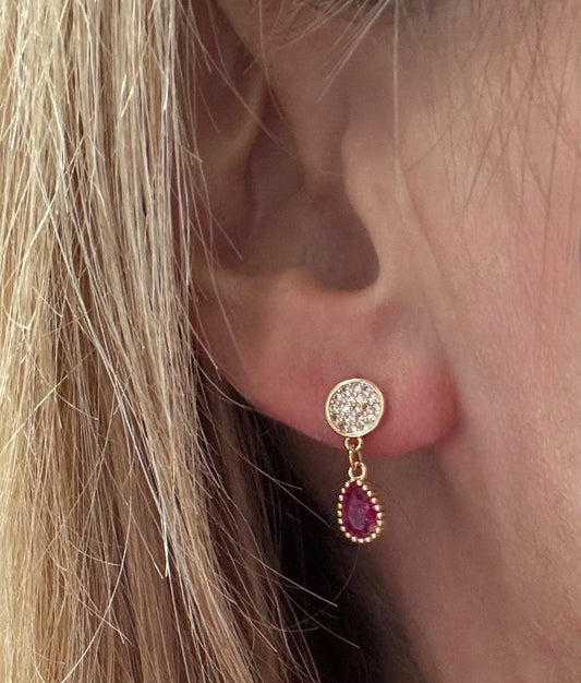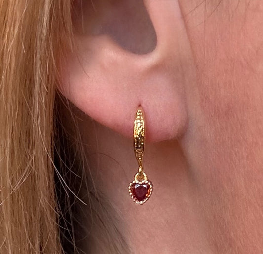 Boucles d'oreilles Orphée avec coeur en zirconium rouge " grenat "