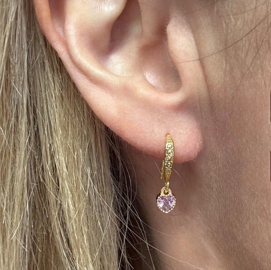 Boucles d'oreilles Orphée avec coeur en zirconium rose