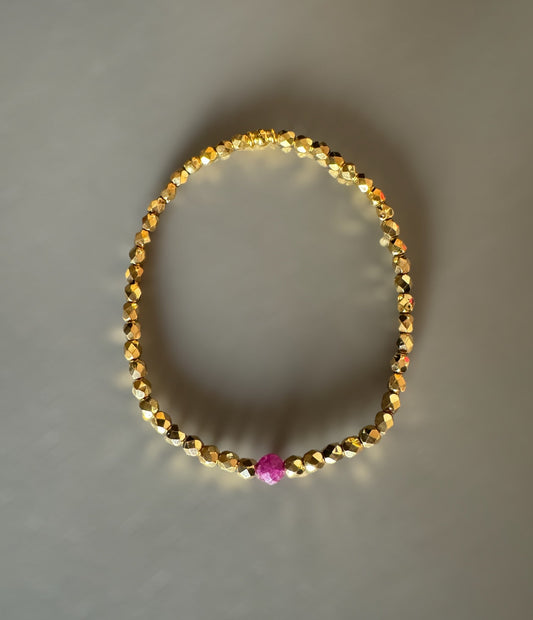 Bracelet Orphée facettes dorées et Rubis