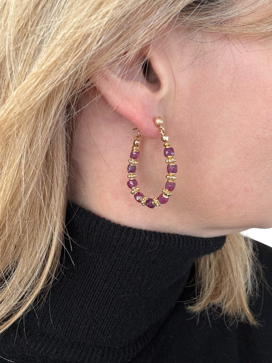 Boucles d'oreilles Diana créoles en Rubis