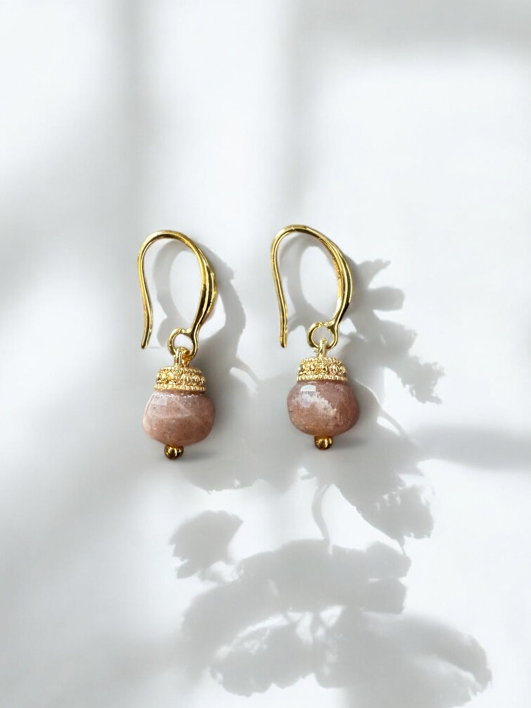 Ces boucles d'oreilles complètent la collection Olympe en reprenant l'un des éléments clés : la pierre facettée allongée suspendue à un crochet doré épuré. Elle est mise en valeur par une attache sculptée qui fait écho aux éléments dorés travaillées du collier et du bracelet. Un modèle minimaliste et élégant en cohérence avec l'esthétique architecturée de la collection.