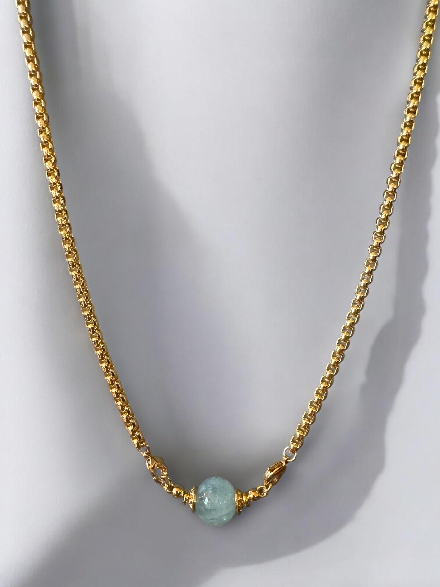 Deux fermoirs à l'avant pour attacher la pierre : homard 9,5 mm en plaqués or 3 microns et un fermoir pour attacher la chaine à l'arrière du cou : homard pivotant 24K - 6,5 x 12 mm