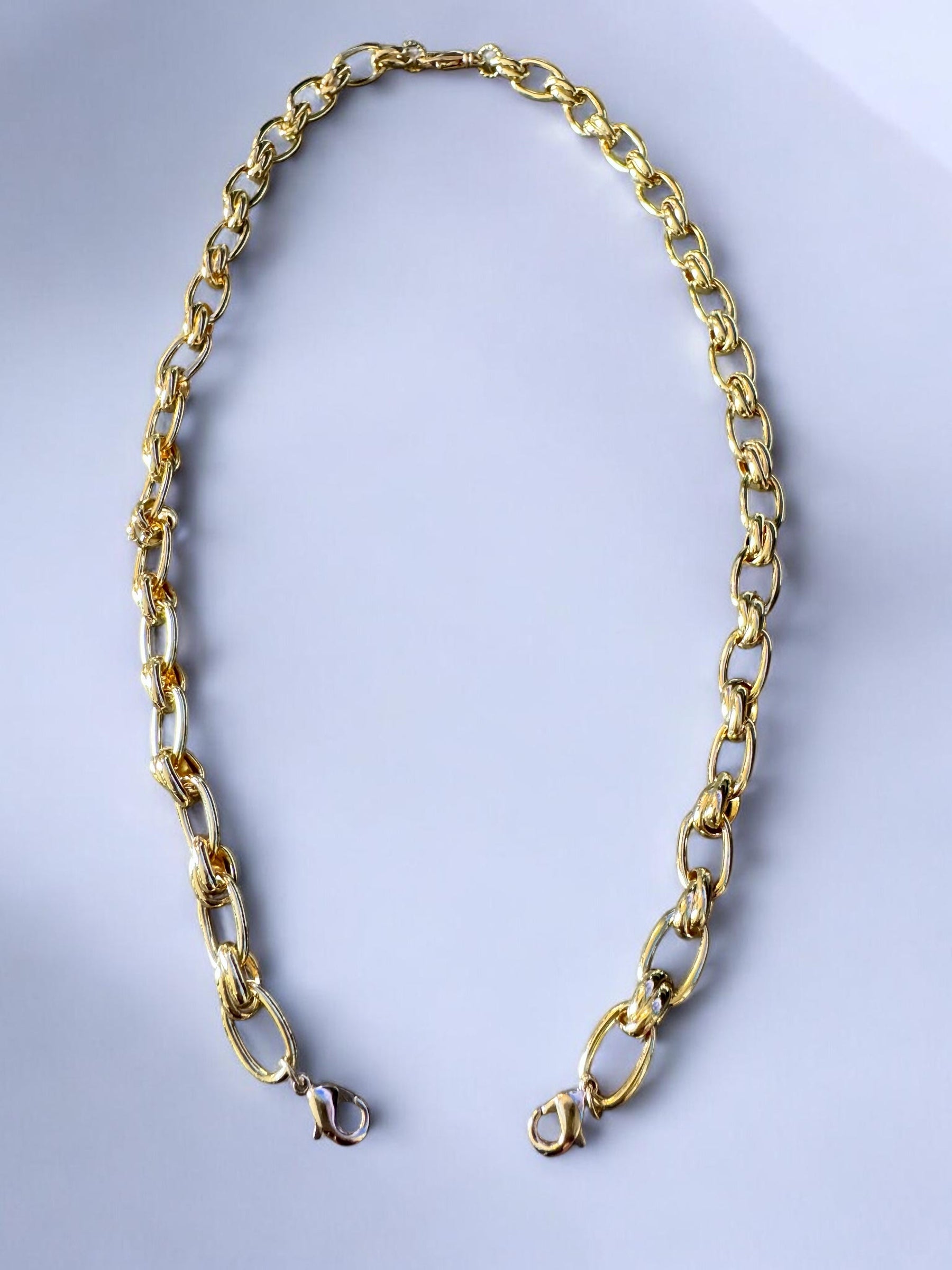 Chaine 24K antiternissement, maillons ovales alternés 7 x 8 x 11,5 mm