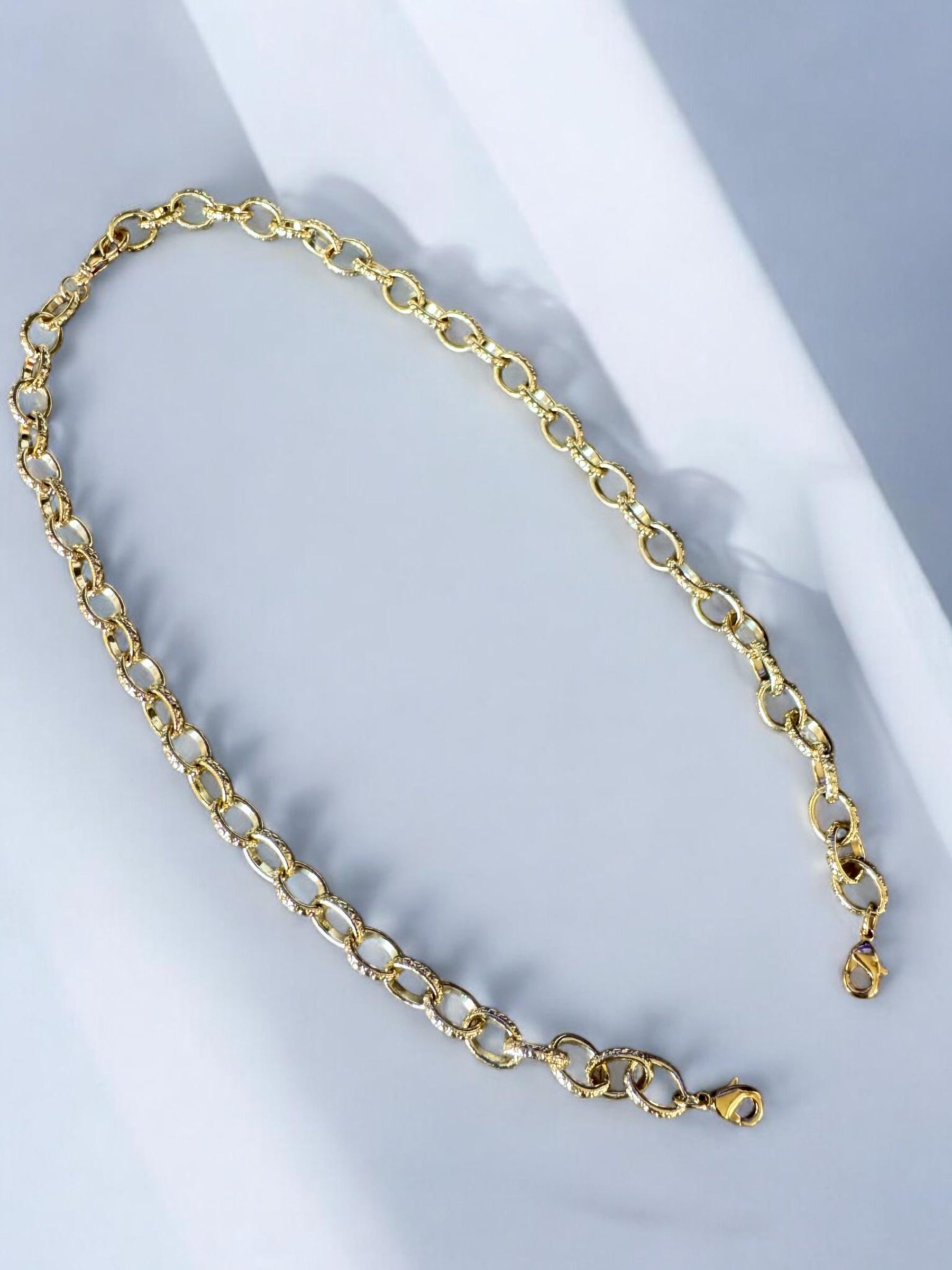 Chaine 18K antiternissement, maillons ovales martelés et texturés 7 x 9 mm