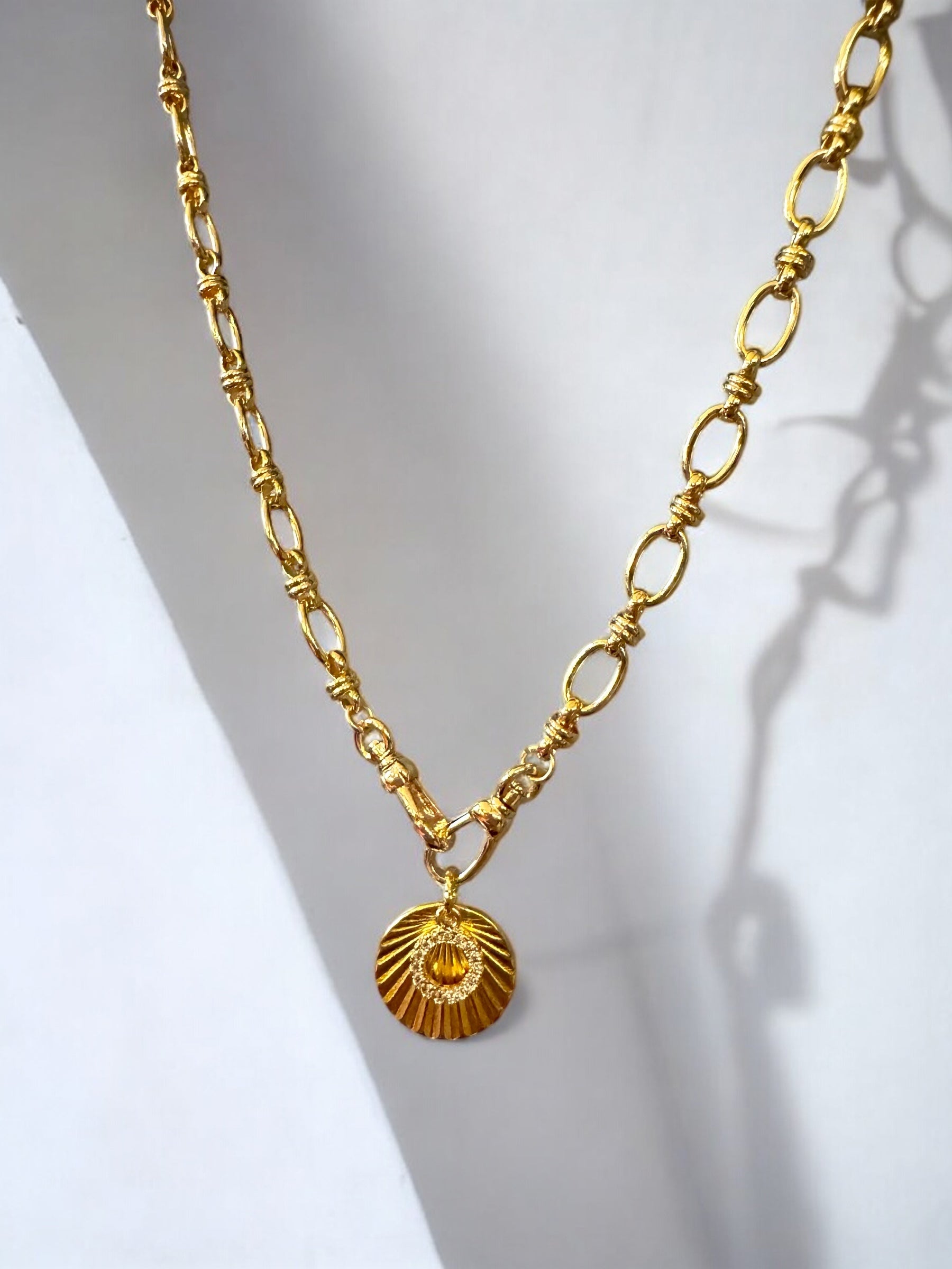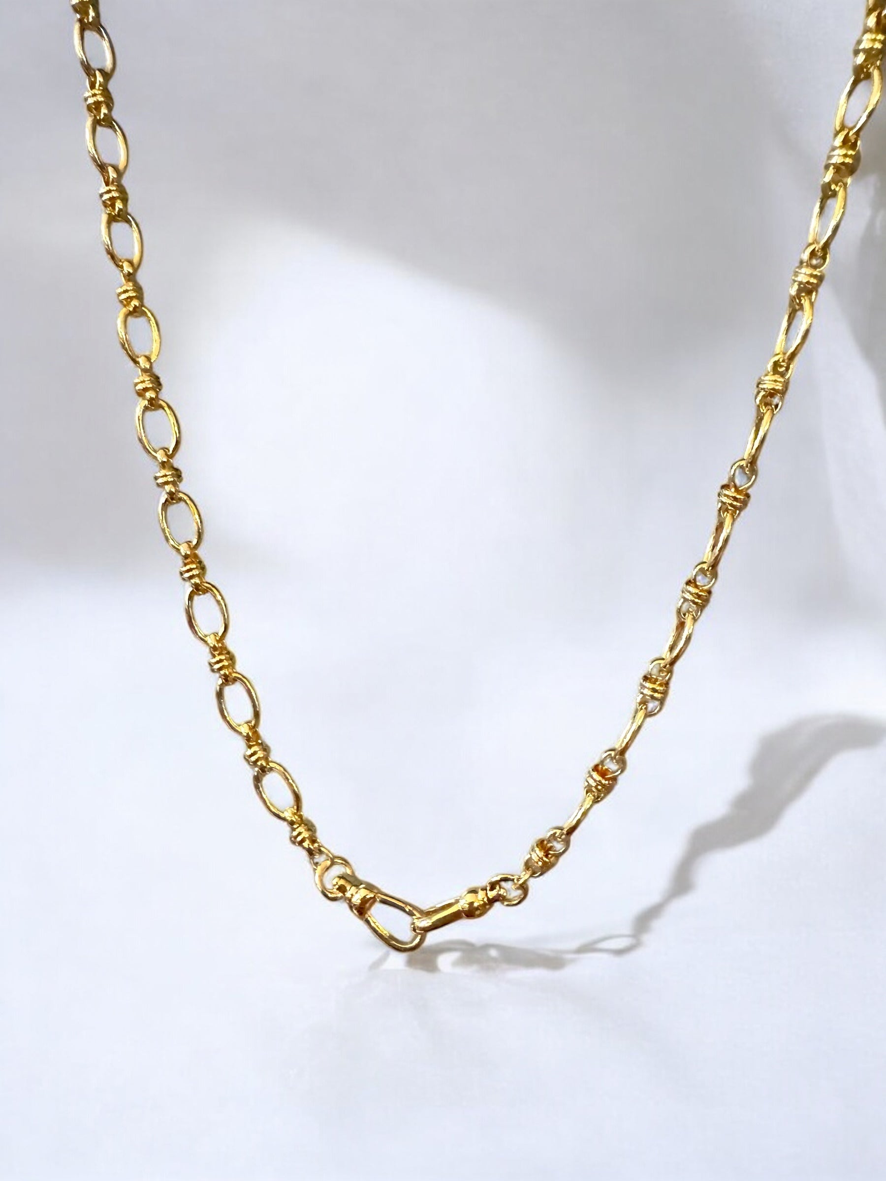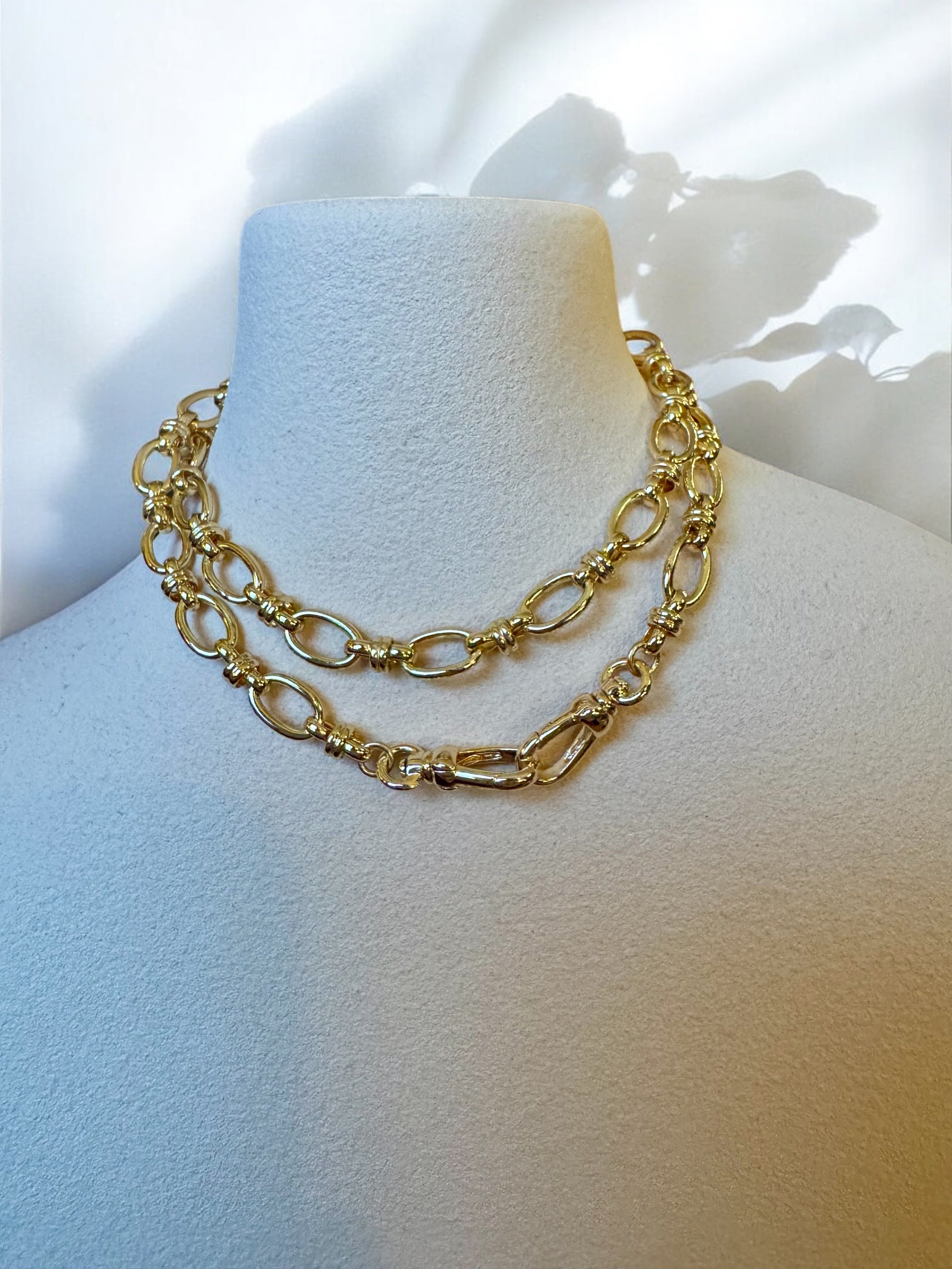 La chaîne Ophélie est composée de maillons ovales reliés par de petits maillons travaillés pour une allure structurée. Elle est dotée de fermoirs pivotants offrant deux façons de la porter. Portée seule, les deux fermoirs se placent à l'arrière. Les fermoirs placés à l'avant permettent d'y suspendre un pendentif. La chaîne Ophélie est compatible avec tous nos pendentifs à accrocher sur les fermoirs pivotants ce qui en fait une chaine polyvalente pour s'adapter à différents styles.