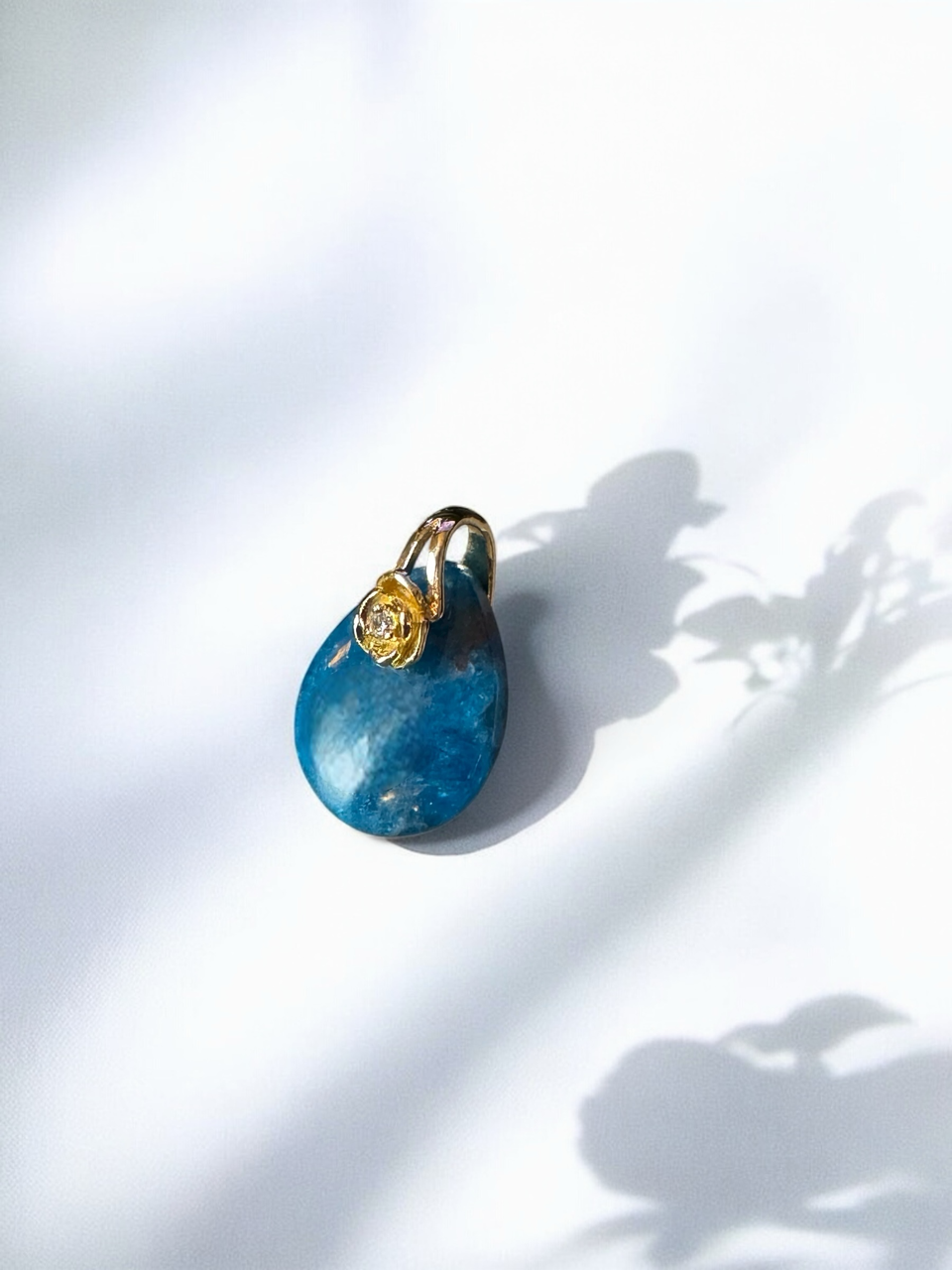 Pendentif en Apatite avec bélière fleur et oxyde de zirconium